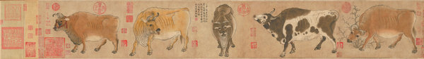 Another highlight, the Tang Dynasty (618-907) painting Five Oxen, embodies a modern tale of perseverance. One of the earliest surviving Chinese paintings drawn on paper, this scroll in the Qing royal collection disappeared after the Eight-Nation Alliance invaded Beijing in 1900.