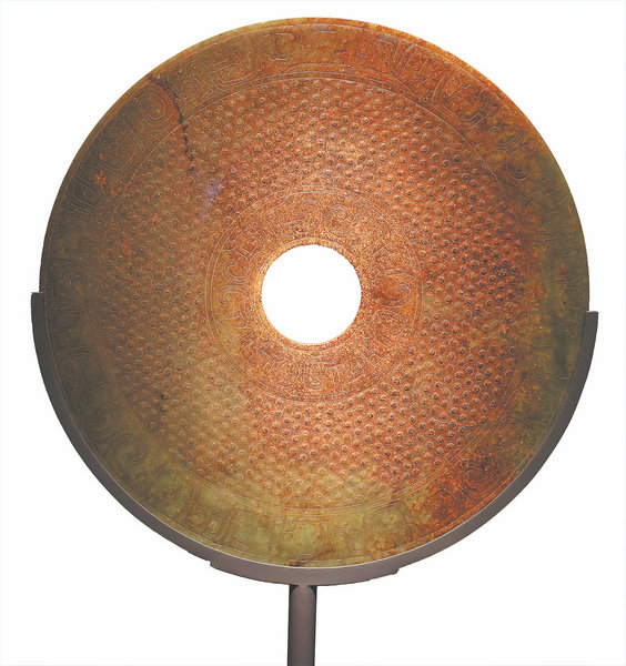 Also from the former Qing royal collection, the jade disc, with a 40-centimeter diameter, is one of the largest heirlooms of its kind in Chinese history.