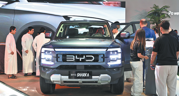 Visitors view a BYD vehicle at the Auto World Show in Hawalli Governorate, Kuwait, on Sept 22. The globalization of Chinese companies is emerging as a new growth engine that could reshape the country's economic structure, a Goldman Sachs report said. ASAD/XINHUA