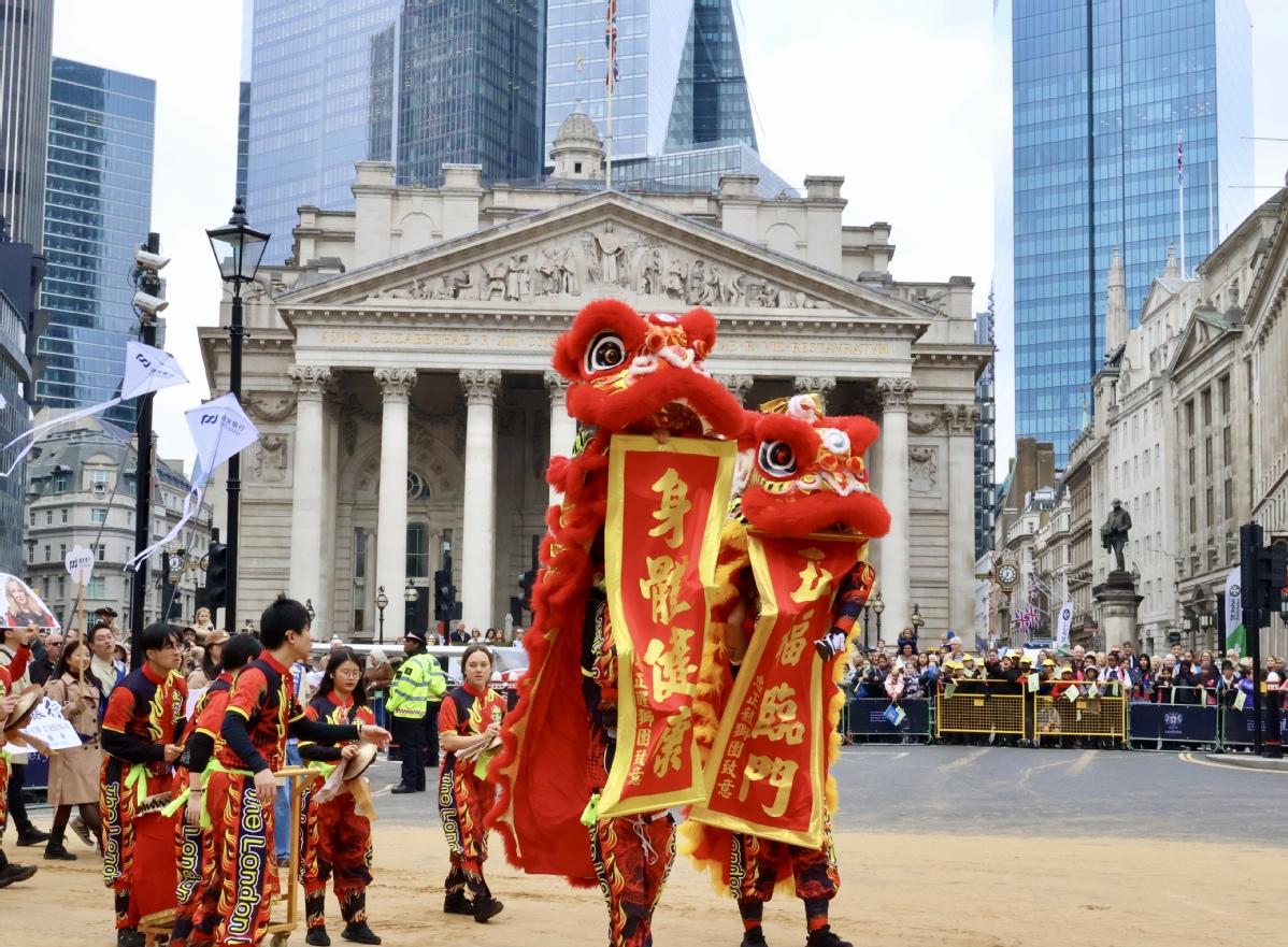 Lion dances, drumming and other traditional performances accompanying the float symbolized collaboration and friendship between China and the UK.