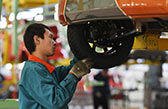 A show model poses next to a car at the Shandong auto show in Jinan, capital of the Shandong province on April 11, 2013. [Ju Chuanjiang / Asianewsphoto]