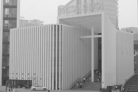 should have remained standing. But in an exclusive interview with China Daily Website, Wu explained that the old church was deteriorating in a dirty and noisy street, and it was becoming too dangerous to hold services in it. He added that the original church was too small to hold the increasing number of Christians attending services there. "The old church didn't suit the development and the surrounding commercial buildings," he said. "The style of old church was neither baroque nor Roman, and it wasn't like a church," explained Wu. Church administrators welcomed architect firms to submit designs for the new church, and German company GMP International GmbH came up with the all-white structure. Wu said the church made clear its interior and exterior requirements, including ways to cut operating costs. "I am 150 percent satisfied with the new church's design, and the placement