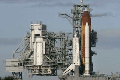 Space shuttle Discovery is pictured on its launch pad 39A at the Kennedy Space Center in Cape Canaveral, Florida October 23, 2007. [Agencies]