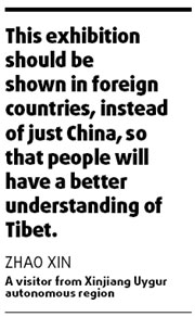 Zhao Xin, a visitor from the Xinjiang Uygur autonomous region, said: "This exhibition should be shown in foreign countries, instead of just China, so that people will have a better understanding of Tibet."