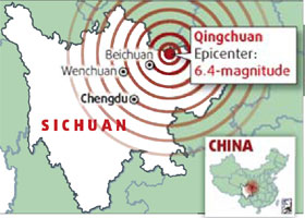 The aftershock measuring 6.4 on the Richter scale is the strongest since the 8.0-magnitude Wenchuan County quake on May 12, and like the original quake, was felt across China.