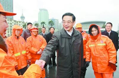 2月7日,省委書記、省人大常委會主任周強(qiáng)在長沙看望慰問環(huán)衛(wèi)工人。 記者 張目 攝