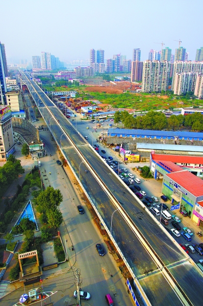 珞獅南路高架橋起點武昌文秀街,止于野芷湖大橋,全長2.9公里,其中高架橋1.92公里,最高處橋面距地面20.4米,是武漢中心城區(qū)市政高架橋主橋面高度第一的立交橋,屬特大型城市橋梁工程。