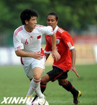 8月4日,中國(guó)國(guó)家青年隊(duì)球員石柯(左)在比賽中帶球突破。當(dāng)日,在“2011年中國(guó)濰坊杯國(guó)際青少年足球邀請(qǐng)賽”半決賽中,中國(guó)國(guó)家青年隊(duì)以2比1戰(zhàn)勝葡萄牙本菲卡青年隊(duì),晉級(jí)決賽。
