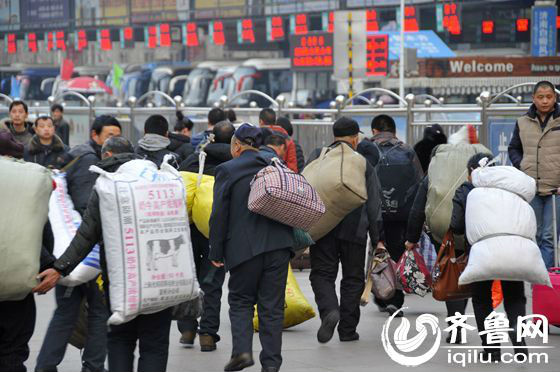 務(wù)工人員也踏上了返程路。(齊魯網(wǎng)記者 滿倩 攝)