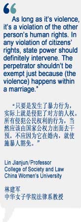 Lawmakers are entering their last stage of assessing China's need for a law against domestic violence and if the country's social and legal environments are ready for one.