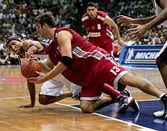 Shawn Marion (L) of Phoenix Suns dives with Turkey's centre Mehmet