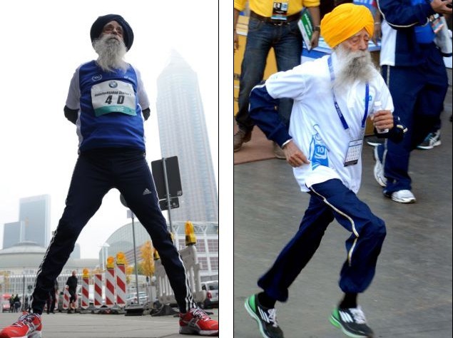 即將迎來(lái)102歲生日的辛格共完成了9場(chǎng)馬拉松比賽。