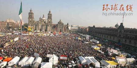 在卡爾德龍就職當(dāng)天,失利的奧夫拉多爾在首都墨西哥城帶領(lǐng)數(shù)萬(wàn)名支持者舉行了“和平抗議偽總統(tǒng)就職”的活動(dòng)。奧夫拉多爾表示:“我們沒(méi)有放棄,我們永遠(yuǎn)不會(huì)接受他。”民意測(cè)驗(yàn)顯示,20%的墨西哥人相信奧夫拉多爾是被欺騙了。