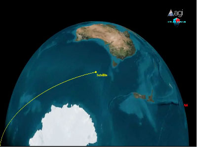 衛(wèi)星被導彈摧毀后,碎片(綠色)將繼續(xù)繞地球飛行,并在進入大氣層時燃燒殆盡(紅色)。