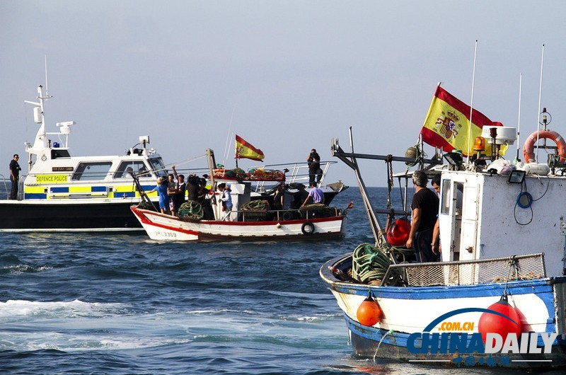 西班牙漁民赴直布羅陀爭(zhēng)議海域 抗議對(duì)方修建島礁(高清組圖)