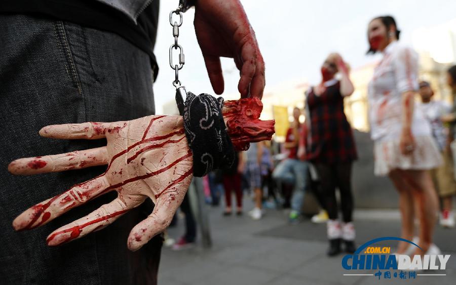 德國“僵尸”大游行 看誰的造型更恐怖?