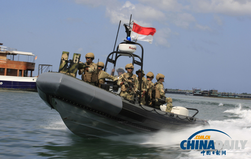 當(dāng)?shù)貢r(shí)間2013年9月27日,印尼巴厘島,為迎接即將舉辦的亞太經(jīng)合論壇(APEC),印尼海軍士兵們正進(jìn)行軍事訓(xùn)練,準(zhǔn)備安保工作。