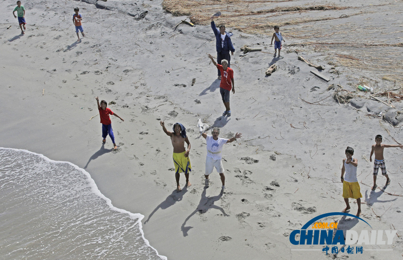 菲律賓空軍向臺風(fēng)災(zāi)區(qū)投擲糧食 災(zāi)民奔跑搶奪