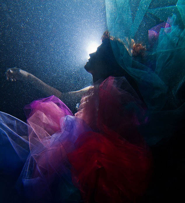 美國舊金山的女?dāng)z影師下田埃雷納自稱“水下醫(yī)療師”,通過水下攝影的方式幫助絕癥幸存者們重新發(fā)現(xiàn)自己的美麗與自信。霍奇金病幸存者尼克伊·科米內(nèi)克稱這張驚艷的照片讓她“找到了重新成為自己的感覺”。(圖片:英國媒體)