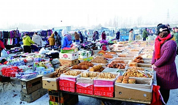 2015-11-24It may be a freezing cold winter's day outside, but that's not stopping people from coming to shop at a farmer's market in the suburbs of Changchun, Jilin province.
