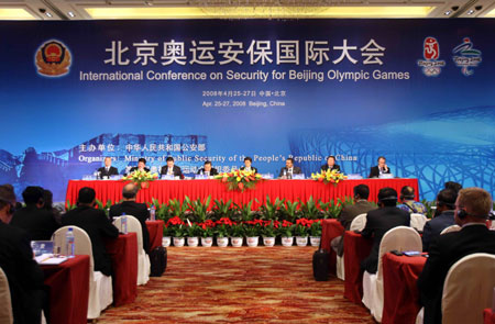 An international conference on security cooperation for the Aug. 8-24 Games in Beijing opens in the Chinese capital city on Friday April 25, 2008. A hotline will be set up between the chief of Interpol and Beijing security officials to ensure the rapid exchange of intelligence during this summer's Olympic Games. [Xinhua]