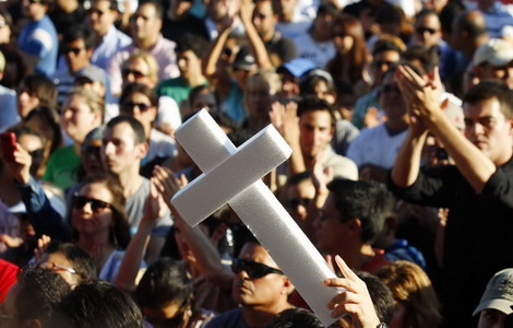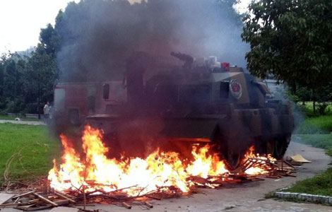 A Libyan rebel fighter sits in the sitting room of Muammar Gadhafi's private plane at the international airport in Tripoli August 28, 2011. The Arabic words read as "Be thankful and we give you more". [Photo/Agencies]