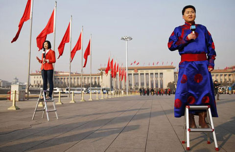 Torchbearers pass the Olympic flame on the beach in front of St. Michael's Mount at Marazion near Penzance in Cornwall, southwest England, May 19, 2012. Some 8000 runners are participating in the Olympic Torch Relay which will cover over 8000 miles throughout Britain, Northern Ireland and Ireland over the next ten weeks before the London 2012 Olympics. [Photo / Agencies] |
