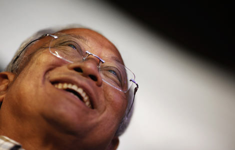 Visitors look at a big copper hot pot during a cooking skill competition in Taiyuan, the capital of North China's Shanxi province, Nov 22 2013. The eight-part hot pot, measuring 2.85 meters in diameter, was recognized as the biggest hot pot in the world. [Photo/icpress.cn]
