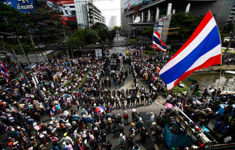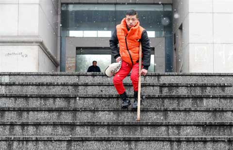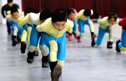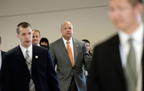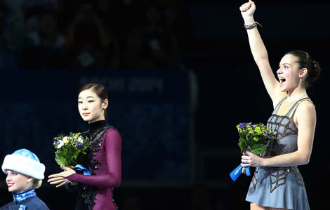 Arsenal's Yaya Sanogo (L) reacts in front of Bayern Munich's Thomas Muller (C) during their Champions League round of 16 first leg soccer match at the Emirates Stadium in London, Feb 19, 2014. [Photo/Agencies] |