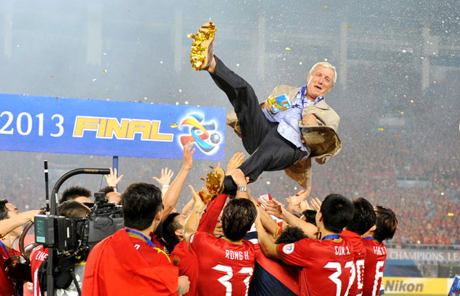 Italian Lippi, who led his country to the FIFA World Cup in 2006, was hired by Evergrande in May 2012 and guided the club to three consecutive Chinese Super League crowns.