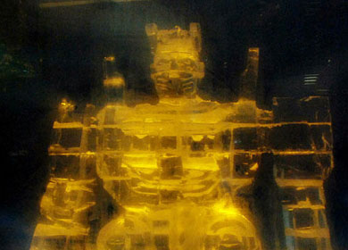 6月24日,在電影《變形金剛2》全球首映之際,冰雕“變形金剛”在廣州正佳廣場舉行亮燈儀式。這座冰雕“變形金剛”高1.8米、寬1.3米,用400多公斤真冰雕刻完成。新華社發(fā)(袁宏偉 攝)