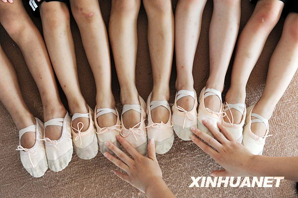 7月8日,在江蘇省連云港市的青少年活動中心,孩子們在老師的指導下練習舞蹈基本功。新華社發(fā)(王春 攝)