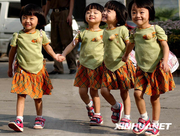 這是南京“四小鳳”上幼兒園的第一天(2002年9月1日攝)。新華社發(fā)(姚強(qiáng) 攝) 編輯:馬原 來源:新華網(wǎng)